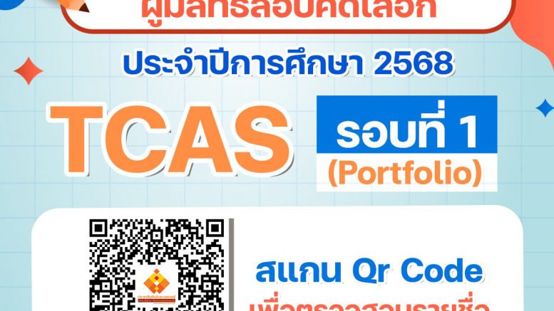 มหาวิทยาลัยเทคโนโลยีราชมงคลอีสาน วิทยาเขตขอนแก่น ประกาศรายชื่อผู้มีสิทธิ์สอบคัดเลือก รอบ #TCAS68 ครั้งที่ 1 Portfolio ระดับปริญญาตรี Posted By: TEP_RMUTIKKC 16 พฤษภาคม 2025 มหาวิทยาลัยเทคโนโลยีราชมงคลอีสาน วิทยาเขตขอนแก่น ประกาศรายชื่อผู้มีสิทธิ์สอบคัดเลือก รอบ #TCAS68 ครั้งที่ 1 Portfolio ระดับปริญญาตรี คณะครุศาสตร์อุตสาหกรรม คณะวิศวกรรมศาสตร์ คณะบริหารธุรกิจและเทคโนโลยีสารสนเทศ สแกน QR Code เพื่อตรวจสอบรายชื่อ หรือคลิก https://www.kkc.rmuti.ac.th/2017/?p=62279 #RMUTIKKC #ราชมงคลขอนแก่น #TCAS68 ————————————————————————- ติดตามข้อมูลข่าวสารต่าง ๆ ของ มทร.อีสาน วิทยาเขตขอนแก่น WEBSITE : https://www.kkc.rmuti.ac.th FACEBOOK : https://www.facebook.com/Rmutikhonkaen/ X : https://x.com/Rmuti_KKC TIKTOK : https://www.tiktok.com/@prkkc.rmuti IG : https://www.instagram.com/rmuti_kkc/