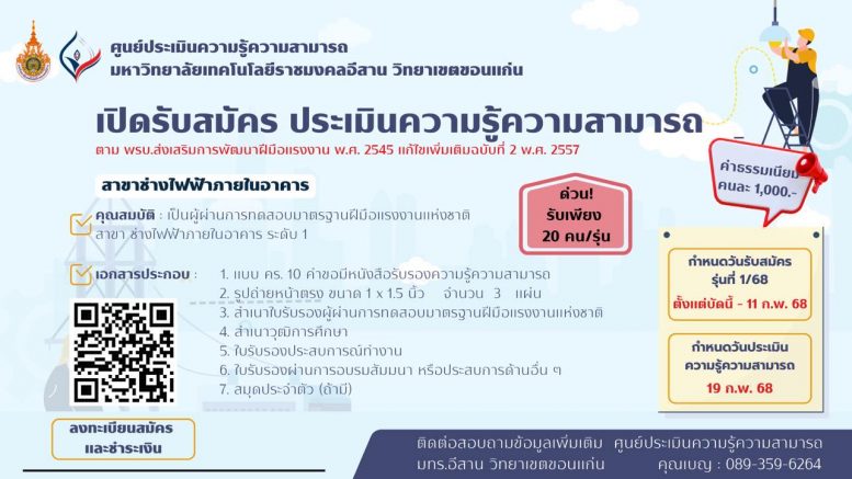 Be the first to comment on "เปิดรับสมัคร ประเมินความรู้ความสามารถ สาขาช่างไฟฟ้าภายในอาคาร คุณสมบัติ เป็นผู้ผ่านการทดสอบมาตรฐานฝีมือแรงงานแห่งชาติ สาขาช่างไฟฟ้าภายในอาคาร ระดับ 1"