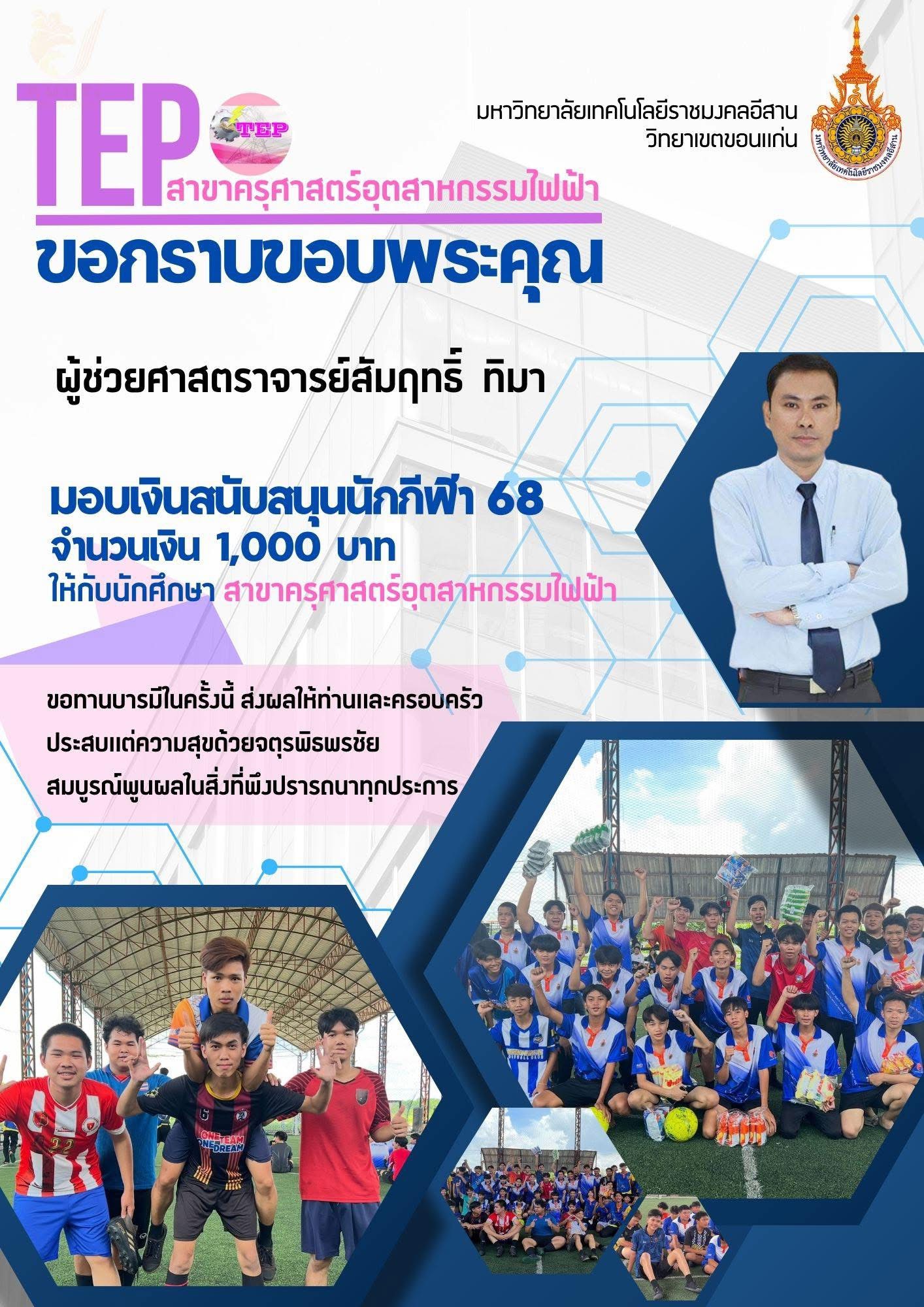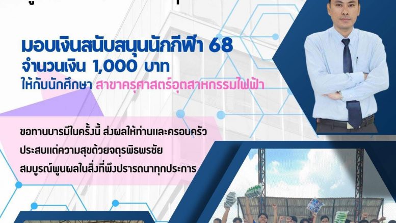 #เนื่องในโอกาสมอบเงินสนับสนุนกิจกรรมกีฬาภายใน 68 ให้กับนักศึกษาสาขาครุศาสตร์อุตสาหกรรมไฟฟ้า จำนวนเงิน 1,000 บาท